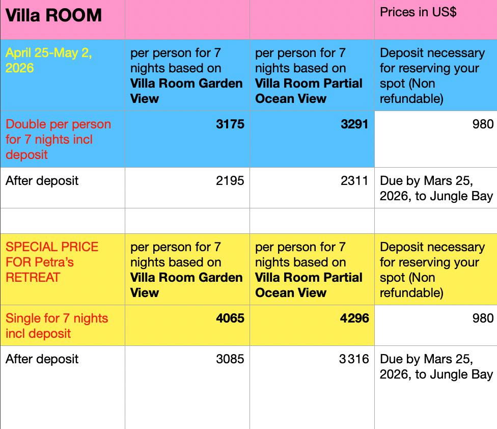 The remaining balance due to Jungle Bay will be collected directly by Jungle Bay via credit card no later than March 25, 2026
