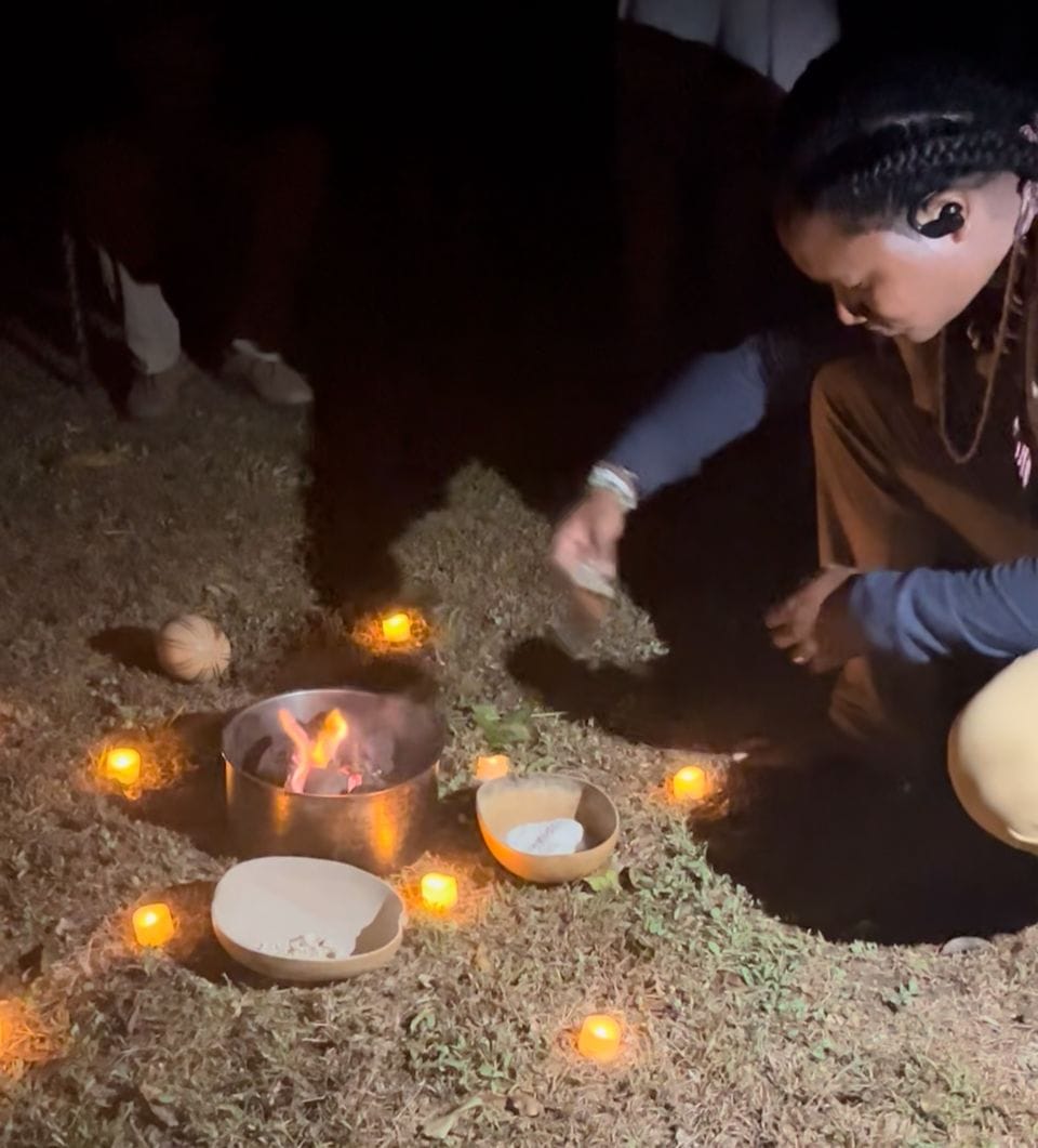 Under the light of the full moon, we gather in a sacred circle, eventually guided by Chief Lorenzo, a former Chief of the Kalinago people, whose presence carries deep ancestral wisdom and a profound connection to the land.
